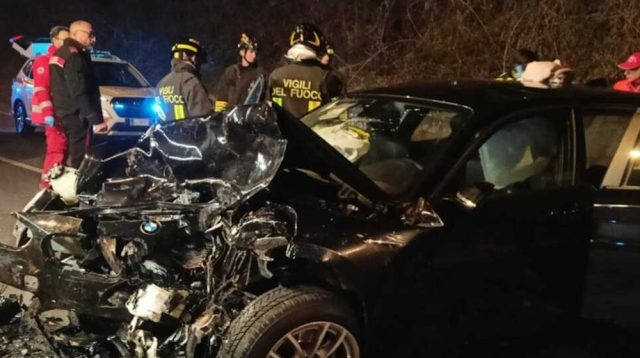 Un codice rosso, due codici gialli e due codici verdi, tra l’altro secondo constatazione conseguente ad estrazione di alcune tra le persone coinvolte dalle lamiere delle vetture semidistrutte, nel frontale avvenuto alle ore 17.55 circa di oggi, sabato 21 febbraio, lungo la Strada provinciale numero 26 “dei Castelli dell’Arno” nel territorio comunale di Besnate (Varese), tratto localmente noto come via Gallarate, sezione tra l’incrocio con via Ciro Menotti e l’incrocio con via Guglielmo Marconi. Imponente il dispositivo di soccorso attivato per l’assistenza medica a due donne (55 e 40 anni) ed a tre uomini (61, 24 e 19 anni); per il ferito più grave è stata fatta intervenire l’eliambulanza dalla base di Villa Guardia (Como). A lungo impegnati sul campo gli effettivi dei Vigili del fuoco; accertamenti esperiti da elementi dell’Arma dei Carabinieri. Nella foto, la scena dell’incidente; altre immagini sulla nostra pagina “Facebook”.