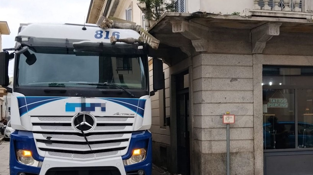 Busto Arsizio (Varese), camionista calcola male le… altezze: balcone demolito