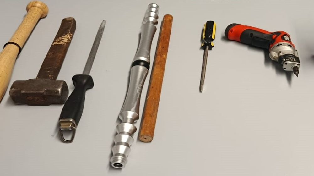 In immediata candidatura al “Nobel” della pirlaggine ladresca i due soggetti – un 47enne bergamasco 47enne ed una 40enne comasca della frazione Ponte Chiasso – che ieri pomeriggio, all’area di servizio “Lario est” sulla A9 italiana (chilometro 29, direzione nord-sud) e meglio in territorio comunale di Cadorago (Como), sono stati intercettati sul piazzale antistante il complesso adibito a bar-ristorazione-supermercato a libero servizio in quanto sospettati di taccheggio all’interno della struttura. Dalla modesta entità il valore commerciale del prodotto – un flacone di “gel” – effettivamente prelevato dagli scaffali e non pagato alla cassa; assai problematico ed anzi impossibile, da parte dell’uomo e della donna, il giustificare quanto gli agenti della Polizia di Stato in Como hanno trovato all’interno della vettura con cui la coppia si stava muovendo. Fra le disponibilità: mazza da baseball, martello, bastone, cacciavite con trapano-avvitatore, punteruolo, et similia; quanto sufficiente e sovrabbondante per la formulazione di denunzie sotto titoli varianti dal possesso illegale di oggetti atti ad offendere, possesso ingisutiicato di attrezzi adatti allo scasso e furto aggravato. In più, l’appropriazione indebita a carico della 40enne, essendo l’auto di proprietà d’un terzo residente a Brugherio (Monza-Brianza) e mal fidatosi a dare il mezzo in prestito alla donna. A margine: pregiudicato l’uomo, precedenti di polizia sul conto della donna. In immagine, parte del materiale trovato a bordo della vettura.