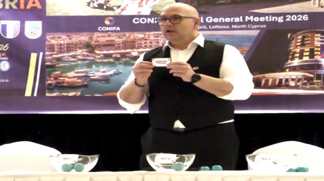 Niente “derby”, nel girone di qualificazione, con la Padania; e lo si sapeva a monte, dal momento che entrambe le rappresentative erano state attribuite alla seconda fascia e pertanto era esclusa l’ipotesi dell’inclusione nel medesimo raggruppamento; e niente “derby”, in questa fase, con la Rezia. Saranno invece RouetProvenza e Cipro del Nord gli avversari del Canton Ticino agli Europei di calcio 2026 area Insubria – quale riferimento vale la sede geografica in cui saranno disputati gli incontri – sotto egida ed identità della Conifa ovvero della Confederazione tra entità “nazionali” fuori dal contesto Fifa, evento pedatorio qui già presentato (https://ilgiornaledelticino.ch/calcio-il-ticino-agli-europei-2026-e-non-e-un-pesce-daprile-in-anticipo) e farà perno su Carate Brianza e su Verano Brianza, in provincia di Monza-Brianza, da lunedì 1.o giugno a domenica 7 giugno: tale l’esito del sorteggio che ha avuto luogo sabato 18 aprile negli ambienti del “Grand hôtel Lefkosa” in Dereboyu street a Nicosia, Repubblica di Cipro del Nord, partecipi i delegati delle sei realtà iscritte alla manifestazione. In prima fascia la Rezia e la RouetProvenza, in seconda per l’appunto il Canton Ticino e la Padania, in terza Groenlandia e Cipro del Nord; per ovvia conseguenza, il girone “A” è stato formato con Rezia, Padania e Groenlandia. Calendario definito nelle scorse ore: martedì 2 giugno, Rezia-Padania e RouetProvenza-Canton Ticino; mercoledì 3 giugno, Padania-Groenlandia e Canton Ticino-Cipro del Nord; giovedì 4 giugno, Rezia-Groenlandia e RouetProvenza-Cipro del Nord. primo obiettivo un piazzamento tra le prime due del gruppo; semifinali incrociate (seconda “A” contro prima “B”, prima “A” contro seconda “B”), il resto sarà tutto di guadagnato. In immagine, il momento del sorteggio per il Canton Ticino.