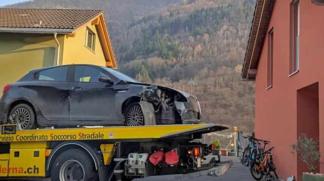 (ULTIMO AGGIORNAMENTO, ORE 17.16) Dall’entità al momento non valutabile le conseguenze per una o più persone coinvolte nell’incidente stradale avvenuto attorno alle ore 16.15 in territorio comunale di Centovalli, frazione Intragna, a breve distanza dal cosiddetto “ponte romano”: qui, standosi a prima e sommaria ricostruzione dell’episodio, una “Giulietta Alfa Romeo” con targhe italiane è andata a sbattere contro un’altra auto e con il ferimento di conducente e/o passeggero. Ancora frammentarie le informazioni dal luogo, stante anche il blocco del traffico con formazione di colonne nell’uno e nell’altro senso di marcia. Sul posto stanno operando agenti della Polcantonale e, per quanto di competenza, della Polcom Ascona; intervenuti due equipaggi con ambulanze del “Salva” da Locarno; lento il deflusso dei veicoli, con transito da coda a testa nell’ordine dei 40 minuti in direzione Locarno. Nella foto, uno dei mezzi coinvolti nell’incidente; altre immagini sulla nostra pagina “Facebook”.