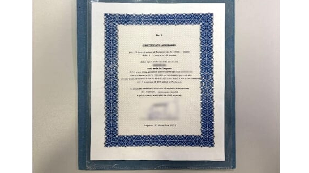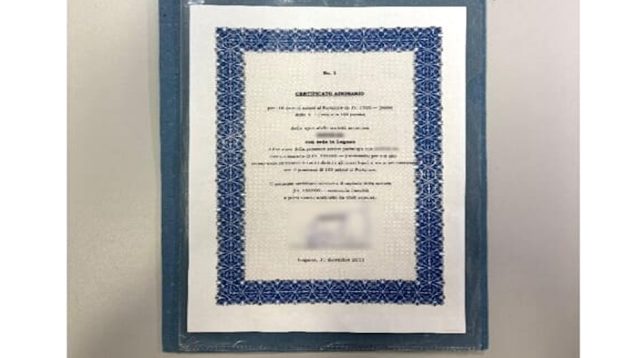 I contanti erano a posto, cioè nella norma: circa 3’000 euro quelli dichiarati, circa 3’000 euro quelli riscontrati da effettivi della Guardia di finanza che all’uomo si erano rivolti durante l’ordinario controllo in frontiera alla stazione ferroviaria di Chiasso, sul transito di un treno dal Ticino all’Italia. Un po’ meno digeribile, ai sensi delle norme valutarie peninsulari, l’evidenza di 100’000 franchi – a valore nominale, ossia dichiarato in forma cartacea – rispondenti ad un certificato azionario e che si trovava in un bagaglio del viaggiatore: per via del calcolo delle eccedenze e delle sanzioni collegate, si profila una multa fra il 70 ed il 100 per cento di 97’146.68 euro, secondo il cambio ufficiale acquisito come riferimento, stante la mancata dichiarazione sui trasferimenti transfrontalieri di valori. Il certificato in possesso dell’uomo, cittadino italiano con domicilio in Svizzera, risulta essere stato in carico ad una società con sede in Lugano e rilasciato nel dicembre di qualche anno fa; impossibili, a rigore delle notizie disponibili, l’identificazione della realtà emittente, ergo sulla sua esistenza, ed il riscontro sull’autenticità e sulla reale commerciabilità del titolo medesimo, che è indicato come certificato azionario al portatore (il che suona quantomeno strano, stanti i noti vincoli normativi elvetici). Per ora, sequestro amministrativo ed un bel punto interrogativo…