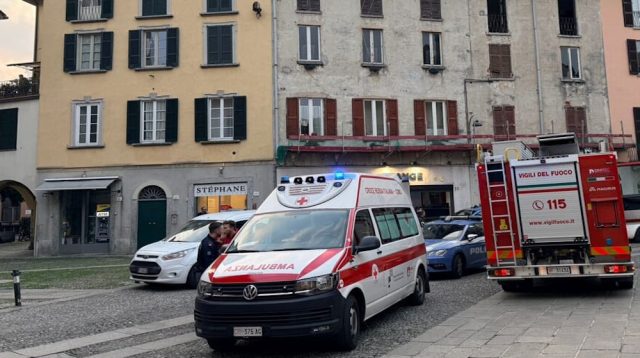 Trattamento sanitario stazionario al “Sant’Anna” di San Fermo della Battaglia (Como), stamane, per due persone ferite ed intossicate causa incendio divampato nella loro abitazione in piazza San Fedele a Como, poco prima delle ore 7.00, accidentali le cause. Il focolaio è stato individuato nel salotto dell’abitazione. Soccorsi portati da operatori sanitari e squadre dei Vigili del fuoco dal Comando provinciale nel capoluogo. Sotto regime di codice giallo il trasferimento delle due persone coinvolte alla sede nosocomiale; dichiarata l’inagibilità dell’appartamento. In immagine, una fase dell’intervento.
