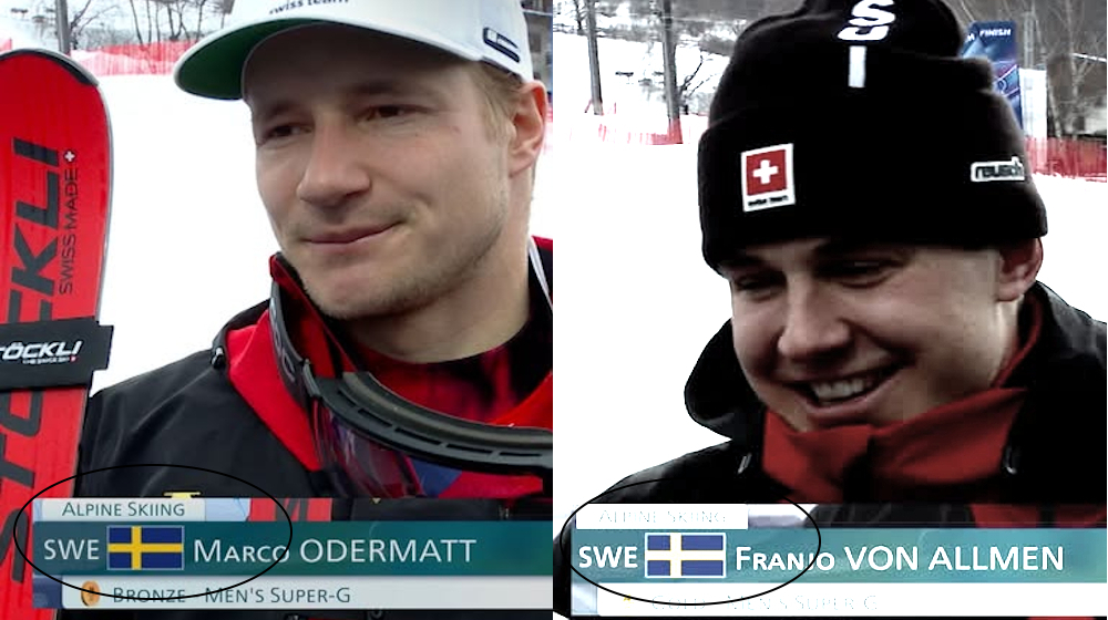 Critiche e non dappoco si meriterebbero le regìe televisive proposte a Milano ed a Cortina d’Ampezzo e nelle altre sedi deputate ad accogliere le correnti Olimpiadi invernali; è tema su cui si tornerà, ricordandosi che l’offerta dei contenuti per quanto riguarda il “pacchetto” grafico e la sigla giunge dalla struttura nota come “Obs” (“Olympic broadtcasting services”), operante in via ufficiale come branca del Comitato olimpico internazionale. Una volta ancora, l’altr’ieri ed ancora ieri in ripresa, la spiacevolissima scoperta dell’ignoranza di qualche ricercatore delle immagini, di qualche addetto all’accoppiamento (nulla di pornografico: è il passaggio logico in cui informazione scritta – una scheda, un testo, un “crawl”, un semplice sottopancia, quel che sia – è associata allo spezzone di filmato), di qualche decisore e di qualche responsabile dell’emissione, stavolta sulle reti Rai: sia l’intervista a Marco Odermatt (terzo nel “Super-G”) sia quella a Franjo von Allmen (vincitore dell’oro nella medesima specialità) sono state corredate dalla sigla “Swe” (Svezia) anziché da ciò che opportunamente avrebbe descritto i due come svizzeri. Peggio ancora, entrambi sono stati onorati con il vessillo delle “Tre corone” anziché con la bandiera rossocrociata. E nessuno che abbia interrotto tale scempio (tra l’altro, con furto di due medaglie…) purtroppo passato – perché interferire non si puote – anche sul catodo elvetico.
