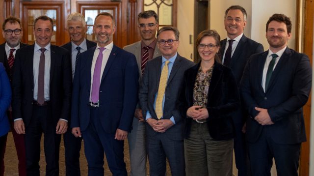 Contigui; vicini; dagli interessi largamente coincidenti; l’uno porta dell’altro in una direzione, e viceversa. Potrebbero incontrarsi in via ufficiale una volta la settimana, le autorità cantonali di Ticino e Grigioni, e di argomenti su cui discutere (e convergere) rimarrebbe ad ogni modo una lista ponderosa: prova sia il fatto che questo pomeriggio, in incontro programmato e svoltosi a Coira, al centro dell’attenzione sono finiti la fugura gestione del lupo, l’eventuale arrivo della peste suina africana su suolo svizzero e la partecipazione di Berna alla copertura dei danni causati dai nubifragi nel… 2024, ormai sette stagioni addietro volendoci considerare ormai con un piede nella primavera 2026; oggetto di analisi anche la promozione della lingua e della cultura italiana e gli effetti dei risparmi confederali secondo il “pacchetto” in vista per il 2027. Condivise inoltre informazioni sui rapporti con l’Italia, sulla revisione del sistema di perequazione finanziaria federale e sui rischi di infiltrazioni della criminalità organizzata in territorio elvetico, materia quest’ultima particolarmente spinosa alla luce delle recenti inchieste con fulcro sulla Mesolcina. I membri dell’Esecutivo cantonale ticinese sono stati accolti da Martin Bühler (presidente del Governo grigionese), Carmelia Maissen (vicepresidente), dagli altri membri del Consiglio di Stato (Peter Peyer, Jon Domenic Parolini e Marcus Caduff) oltre che dal cancelliere Daniel Spadin. In immagine, da materiali della Cancelleria di Stato del Canton Grigioni, alcuni partecipanti all’incontro.