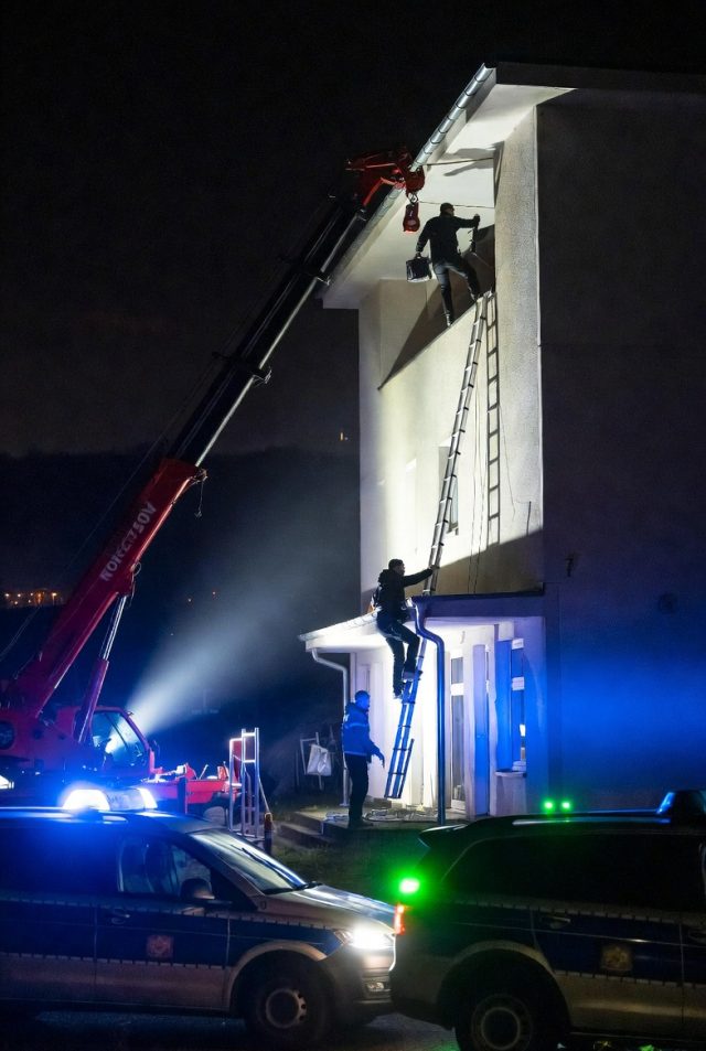 Doch als sie zurückkommen, stehen plötzlich die Kantonspolizei Sankt Gallen und Beamte der Grenzwache vor ihnen! Während die beiden jüngeren Männer sofort festgenommen werden, rast der 39-Jährige los – und klettert in Panik auf das 20 Meter hohe Gegengewicht eines Krans!