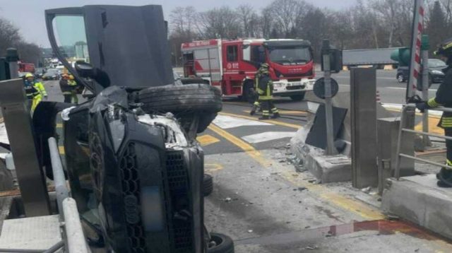 Ricovero sotto regime di codice giallo, dovendosi tuttavia prestare particolari cure e cautele in ragione dell’età della persona ferita, per il 79enne che poco prima di mezzogiorno di oggi ha sbandato e si è rovesciata su una fiancata a ridosso della barriera di casello a Gallarate (Varese), diramazione in accesso all’autostrada italiana A8, Dinamica da accertarsi; ipotizzabile lo scenario secondo cui l’anziano, trovandosi improvvisamente in prossimità del punto di pedaggio, avrebbe sterzato per immettersi sulla corsia funzionale alle sue esigenze (o “Telepass”, o contanti). Soccorsi portati da operatori sanitari e da squadre dei Vigili del fuoco; il 79enne è stato trasportato in sede nosocomiale e trattato per le lesioni subite.