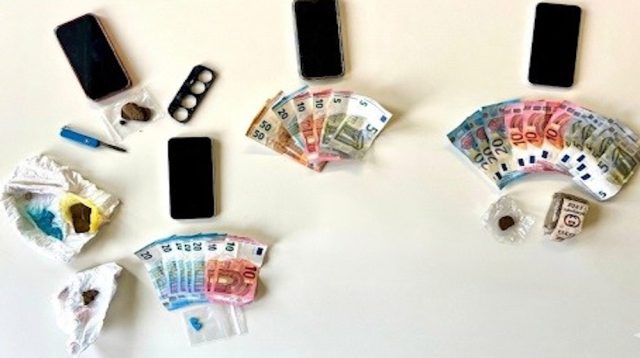 Due senegalesi, un gambiano ed un africano dalla nazionalità imprecisata e titolare anche di passaporto italiano sono stati deferiti nelle scorse ore all’autorità giudiziaria – reati: detenzione e spaccio di droga – sui riscontri di un’operazione condotta da effettivi della Polizia di Stato in Gallarate (Varese), nella giornata di venerdì 20 marzo, bersaglio la stazione Ffs e le pertinenze. Sotto sequestro “ecstasy” (pastiglie del tipo “Blue punisher”) ed hascisc; documentate due cessioni praticamente sotto gli occhi degli agenti (a carico dei clienti la registrazione come assuntori di droga); sequestrati denaro, un cellulare che serviva anche per i contatti tra delinquenti e terzi ed un tirapugni; altro hascisc ed altra “ecstasy” sono stati individuati in un secondo tempo in vari punti prossimi all’area in cui erano stati svolti i controlli. I quattro soggetti saranno anche oggetto di valutazione con riferimento al complesso di attività illecite loro addebitabili. In immagine, parte dei materiali sequestrati.