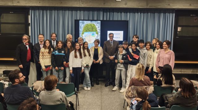 Mariasole Chiti (classe terza C) al primo posto assoluto; Matthias Pintucci (classe terza C) distinto con menzione speciale; poi, in ordine di rango, Lucia Szeno, Eynon Price ed Alberto Oleni per la classe terza A; Elisabetta Kordzakha, Cloe Valnegri, e Lena Gianocca per la classe terza B; Alessandra Fioravanti Pinto, Alen Kuc e Mahdi Farhat per la classi terza C. Questi i vincitori in àmbito locale – impegnate le scuole medie di Lugano quartiere Besso – del concorso internazionale “Un poster per la pace” indetto a livello mondiale dai vertici del “Lions club international” e sviluppato a livello cantonale sotto egida del “Lions club Lugano” e con il concorso di varie figure dell’istituto scolastico (Patrick Gobbi direttore e Valeria Boisco, Nausicaa Pellegrini e Carla Sofia Gomes Moreira – le tre docenti di educazione visiva – in particolare), quest’anno sul tema “Uniti siamo una cosa sola”; alla premiazione hanno preso parte anche i membri della giuria “Lions”, ossia Gianfranco Agazzi, Giulietto Gaspare Rinaldo “Lulo” Tognola, Marco Lucchetti, Christian Vanossi, Renato Folini ed Alessandro Simoneschi. L’opera classificatasi prima assoluta è stata trasmessa ad Elmar Rollwage, governatore “Lions” del Distretto “Centro” in seno al Multidistretto 102 (Svizzera-Liechtenstein) per successive valutazioni. In immagine, un momento della cerimonia.