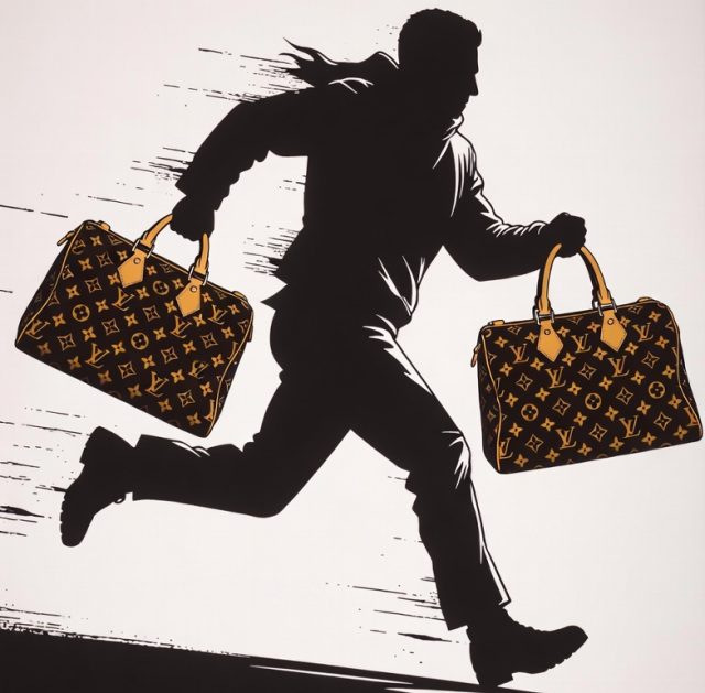 Kurz vor 14.30 Uhr betrat der Unbekannte ein Geschäft an der Sinserstrasse in Cham (Kanton Zug). Auf Englisch fragte er nach Louis Vuitton-Taschen. Die ahnungslose Verkäuferin zeigte ihm zwei Modelle. Doch der Mann hatte nur eines im Sinn: Zugreifen und abhauen!