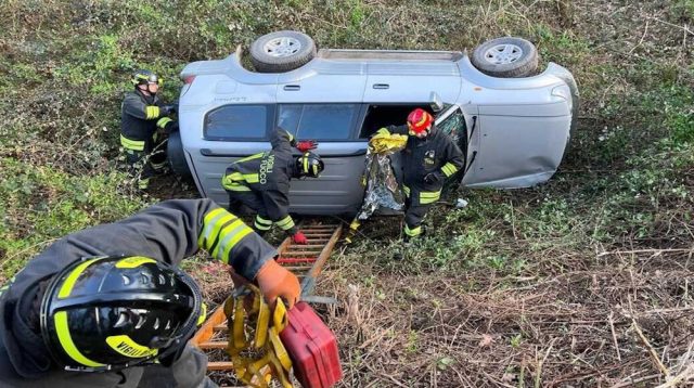 Da valutarsi non solo sul breve periodo, anche e soprattutto in ragione dell’età della persona interessata, le conseguenze fisiche riportate da una 84enne che alle ore 17.22 di ieri, mercoledì 18 marzo, non è riuscita a controllare l’auto alla cui guida si trovava nel transito lungo via Valle in territorio comunale di Somma Lombardo (Varese). La vettura, secondo prima ricostruzione dell’episodio, è uscita dalla carreggiata infilandosi lungo il dirupo sul lato destro rispetto al senso di marcia e si è ribaltata; per estrarre la donna dall’abitacolo, alcuni tra i soccorritori hanno dovuto far ricorso a strumenti meccanici con taglio di parte della carrozzeria, Sul posto operatori in ambulanza, forze dell’ordine ed effettivi dei Vigili del fuoco dal Distaccamento locale. Valutazione a grado medio (codice giallo) per quanto riguarda traumi e lesioni subiti dalla 84enne. In immagine, la vettura in fondo alla scarpata.
