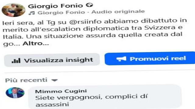 Se pubblichi un commento sotto un mio “post” in qualche pagina della rete sociale, e se quel commento è offesa a me o a terzi che rappresento oltre che concetto palesemente inveritiero, sappi che la replica parte nell’immediato, sul “web” e/o fuori dal “web”. Se poi, con riferimento alla tragedia di Crans-Montana, scrivi che “Siete vergognosi, complici di assassini” e ciò rappresenta il tuo giudizio – il tuo unico giudizio, sulla scorta di che cosa non si sa, sul piede di quali informazioni non si sa, sulla base di quali vincoli non si sa – in calce ad una mia presa di posizione circa l’aggravarsi dei rapporti diplomatici tra Svizzera ed Italia, il minimo che tu possa aspettarti è una querela secca, precisa e mirata. Parole ed opere di Giorgio Fonio, consigliere nazionale in quota neocentristi giàp, che per tramite del legale Rupen Nacaroglu ha fatto partire nelle scorse ore una denuncia penale a carico di tale Mariano Cugini detto Mimmo, giornalista 65enne da Ancona in Milano, professionista dal 1990, ai tempi in quota alla fu “Gazzetta di Ancona” (dove fu anche membro del Comitato di redazione cioè dell’organo sindacale di rappresentanza del personale giornalistico nell’azienda), indi al “Corriere adriatico” ed alla redazione cittadina del “Messaggero”, tra il 2008 ed il 2014 alla redazione centrale della “Gazzetta dello sport” dove si occupava di calcio ed anche qui fu eletto nel Comitato di redazione, ed ancora collaboratore del settimanale “Panorama”.