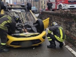 Lonate Pozzolo (Varese): auto si ribalta in località Molinelli, tre feriti