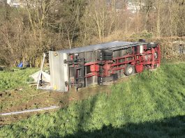 Selbstunfall: Lastwagen kommt von Strasse ab, Fahrer verstorben