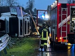 Lomazzo (Como), autoarticolato si ribalta: quasi illeso il conducente