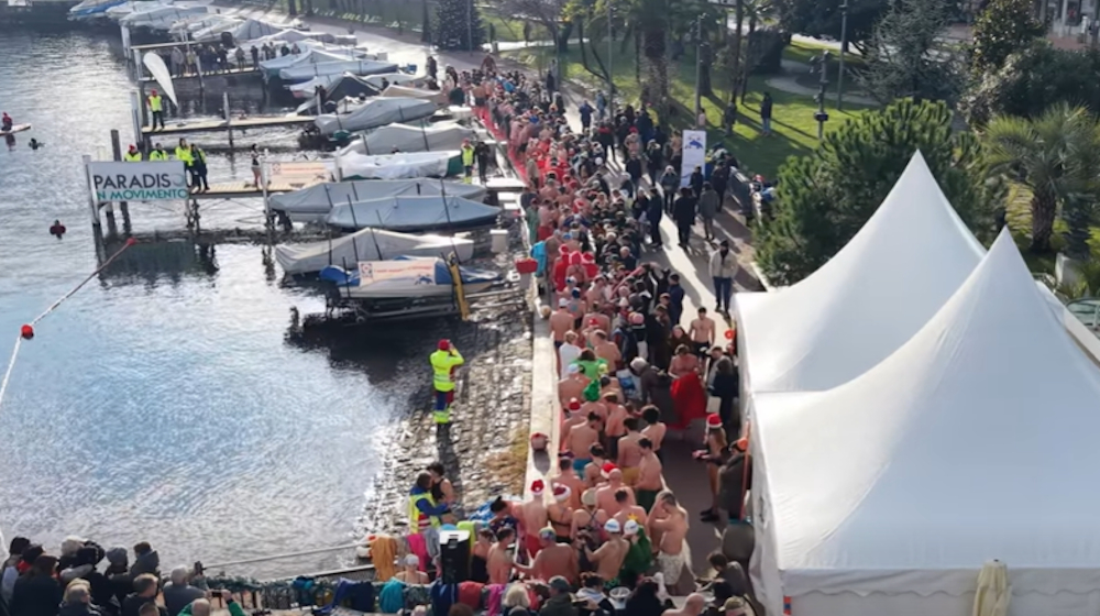 Aria fredda ma non da freddo pungente, otto gradi Celsius all’incirca; acqua fredda ma non da freddo agghiacciante, diciamo tra i 10 ed i 12 gradi della stessa scala: contesto più che accettabile, anche al netto della volontà ferrea dei partecipanti pronti a gettare il cuore e le braccia oltre l’ostacolo, per l’edizione 2025 di “Un tuffo in… Paradiso”, appuntamento natatorio non competitivo riproposto stamane – come sempre, nel giorno di santo Stefano – nel braccio del Ceresio antistante il lungolago di Paradiso. Consistente la pattuglia dei temerari, fatti sfilare ad uno ad uno per il salto dal piccolo molo e con tracciato a rientro verso una postazione di approdo. Evento in essere sin dal 2014 ed anche questa volta in perfetta sincronia, zero problemi, molti i volti felici; alle ore 10.30 il primo balzo in acqua. Nella foto, un momento della manifestazione; altre immagini sulla nostra pagina “Facebook”.