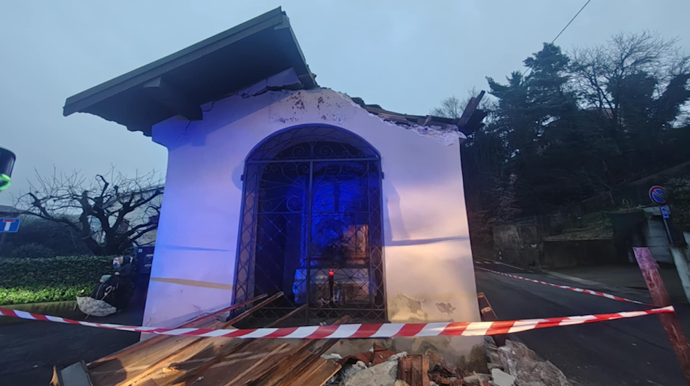 Distrutti metà del tetto ed almeno un terzo del corpo di fabbrica, lesionati l’altra falda ed i travetti di supporto, manifeste le fenditure e le crepe nel resto della struttura, precipitata al suolo la targa lapidea che nel corso dei secoli, con identico messaggio su placche di vari materiali e sostituitesi l’una all’altra per sola usura del tempo, era stata saluto al viandante e con l’invito alla recita di tre Pater Ave Gloria: tali i primi riscontri – per gli accertamenti sulla stabilità del complesso serviranno ispezioni e perizie tecniche – sulle conseguenze dell’odierno e parziale crollo della storica cappelletta alla biforcazione tra via Pola e via Postumia in Varese, bivio a discendere dalla castellanza di Biumo Inferiore lungo le antiche dorsali di svincolo dal borgo verso il fiume Olona. A causare l’abbattimento della porzione di edificio, presente sul territorio “ab immemorabili” e datato 1441 nell’impianto conosciuto ai giorni nostri con dedica alla Beata Vergine Addolorata, il conducente di un camion che intorno alle ore 16.00 di oggi, secondo testimonianze raccolte, è andato a sbattere contro l’edicola e si è allontanato rapidamente dalla zona; non vi sono stati feriti, per quanto consta un residente è riuscito a rilevare il numero di targa del mezzo e su tale elemento, oltre che sui controlli delle telecamere all’intorno, poggia la ricerca del responsabile dell’incidente. Sul posto, insieme con operatori della Polizia locale, anche una squadra di Vigili del fuoco; l’area è stata transennata e messa in provvisoria sicurezza con il recupero dei detriti e delle parti forse recuperabili.